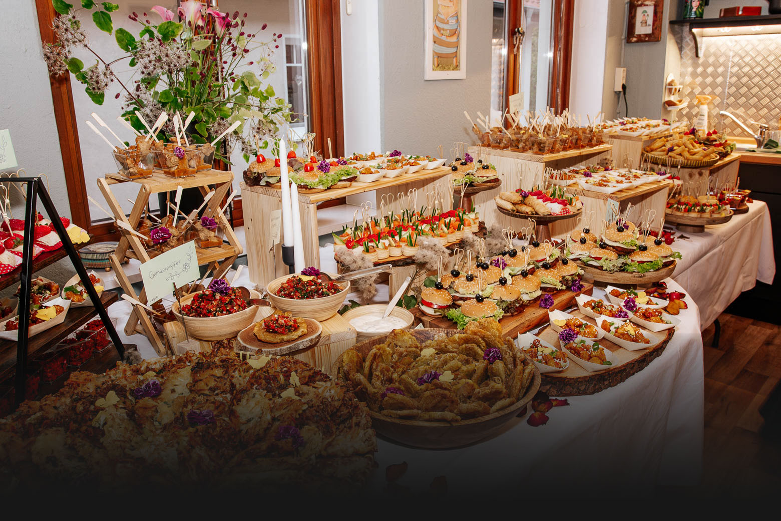 Fingerfood über mehrgängige Menüs bis hin zu vegetarischen und veganen Buffets setzen wir Ihre Wünsche geschmackvoll um.